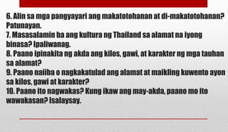 Silay nakalilipad at nagagawang itago ang kani-kanilang pakpak kung kanilang nanaisin. Nais bigyang kagalakan ni Prahnbun si Prinsipe Suton dahil_____. View Alamat-ni-Prinsesa-Manorah-ENERO 7doc from COLLEGE OF BACHELOR O at University Of Cabuyao Pamantasan ng Cabuyao.